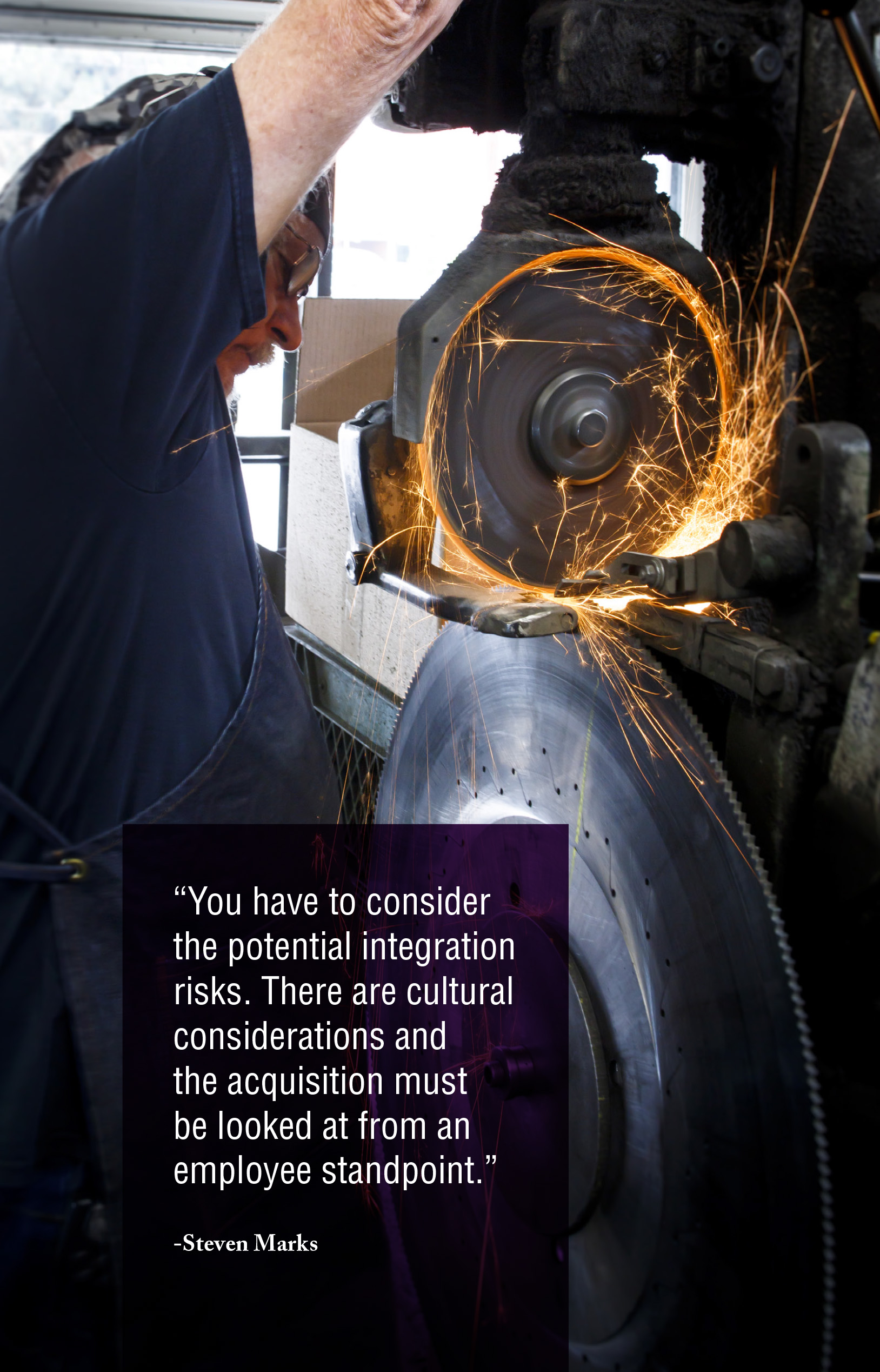 “You have to consider the potential integration risks,” Marks says. “There are cultural considerations and the acquisition must be looked at from an employee standpoint.” Marks gives the example of acquiring two competing companies in which one company pays their employees well but doesn’t provide health insurance, while the other company pays less but provides a generous health insurance benefit. When two companies will be placed under the same umbrella upon acquisition, it won’t take long for employees to realize the disparity. The expectations of employees need to be managed and everyone must be treated fairly, otherwise employees will think negatively of the acquisition.